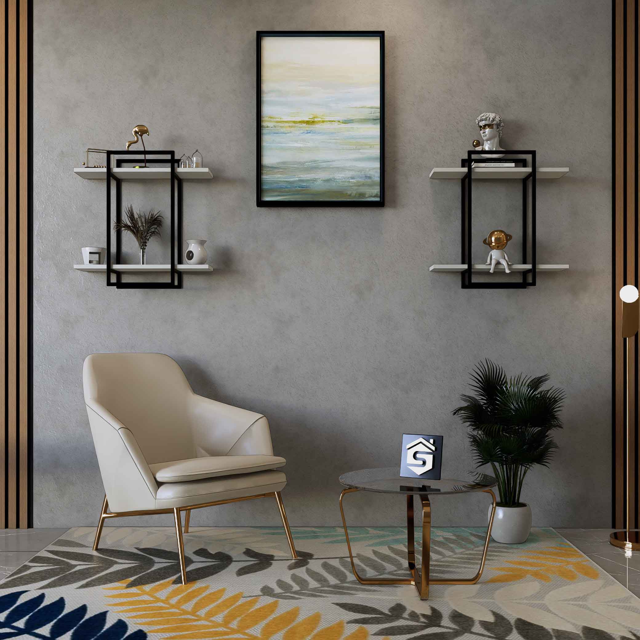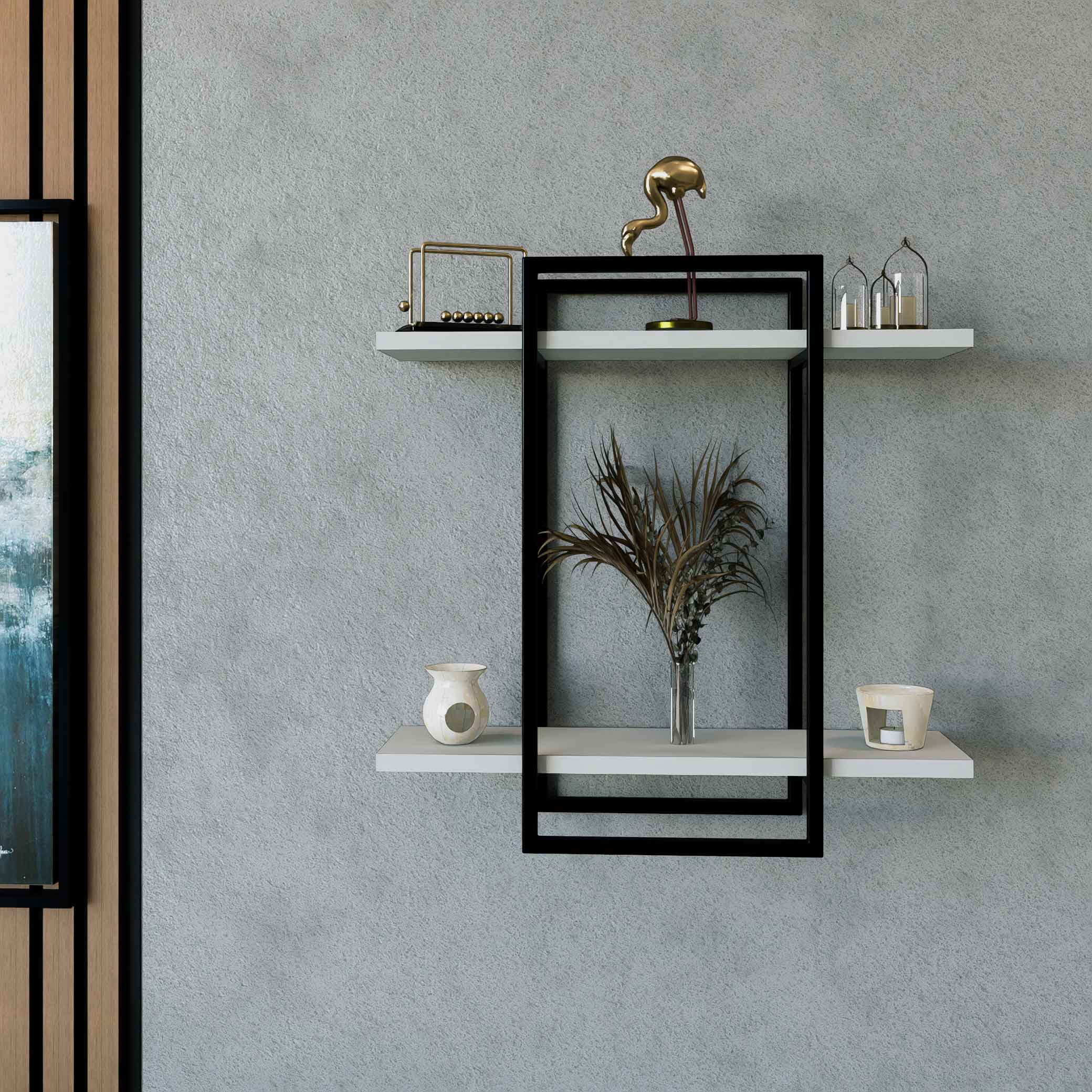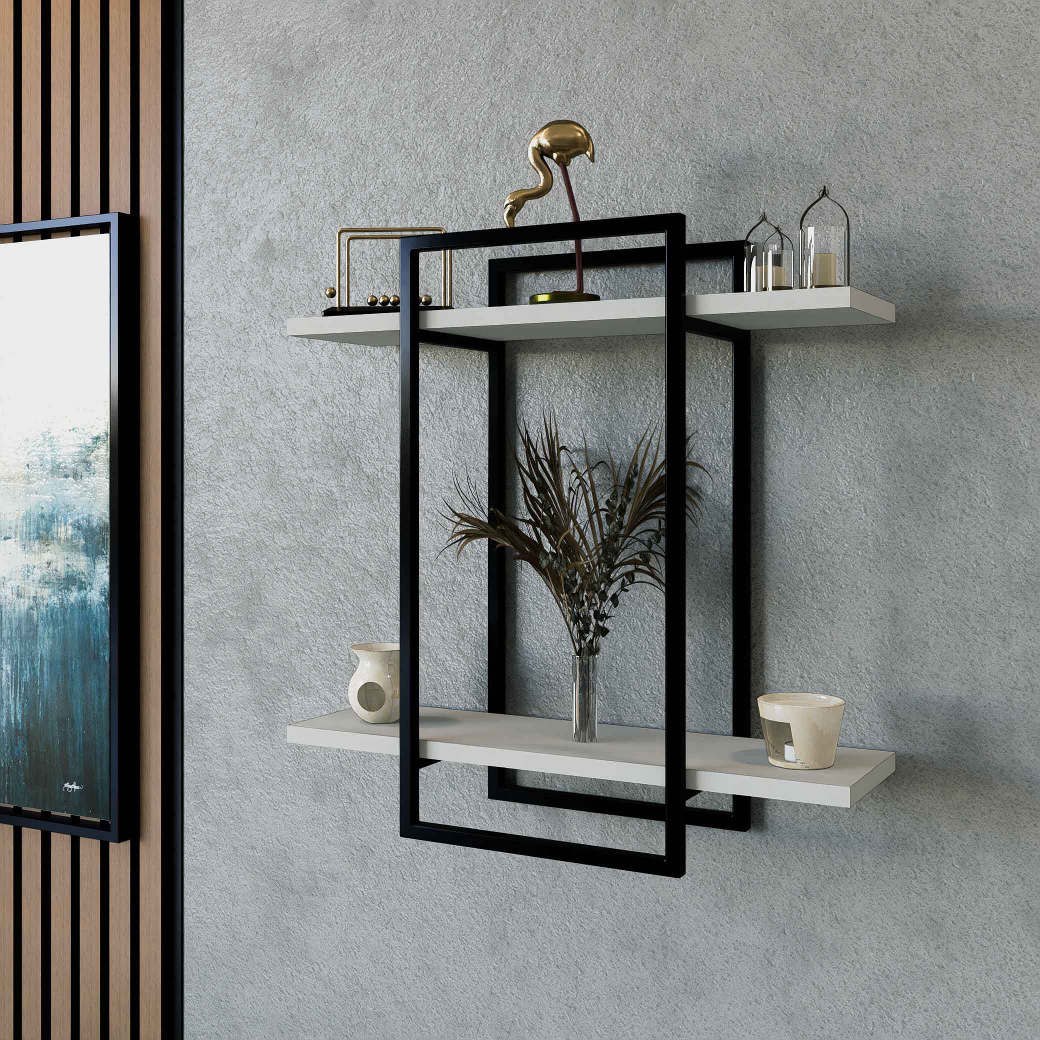 - يتكون الرف من اطار معدني باللون الاسود الجذاب وارفف خشبية باللون الابيض التي تتميز بجودتها ومتانتها