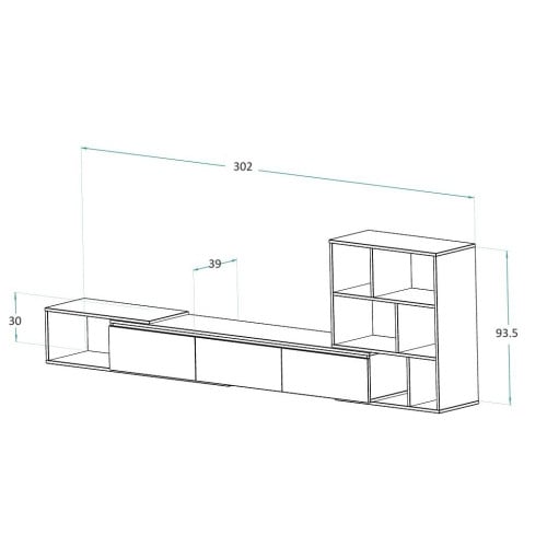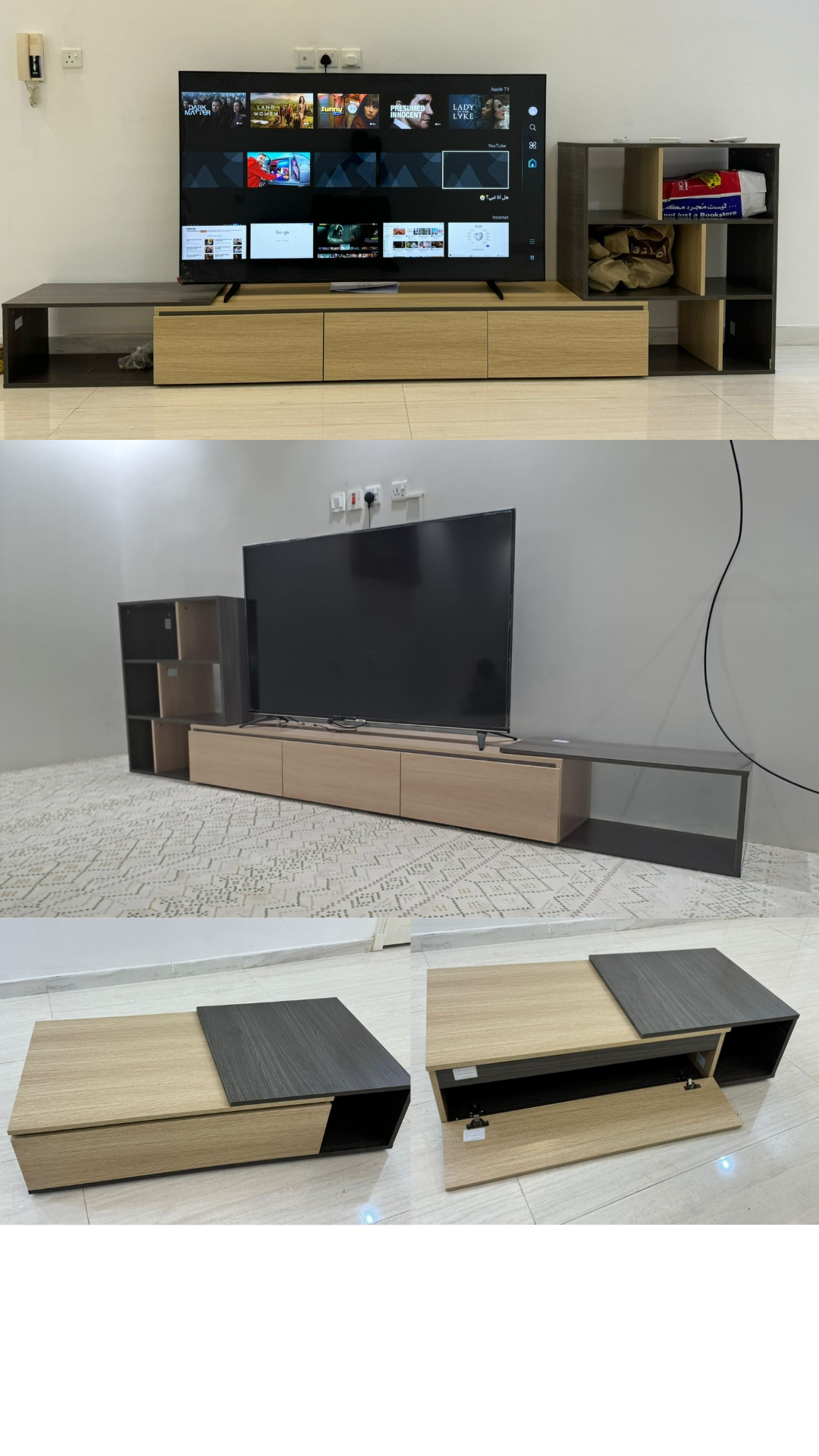 - عدد الابواب : 3 ابواب في طاولة التلفاز تفتح وتقفل بنظام الضغط