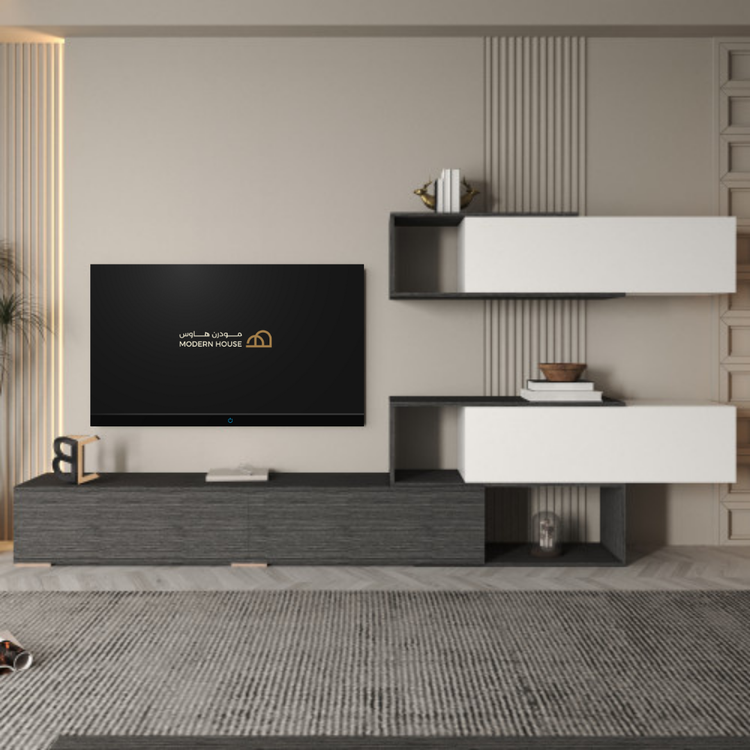 - عدد الابواب : 4 ابواب في طاولة التلفاز تفتح وتقفل بنظام الضغط