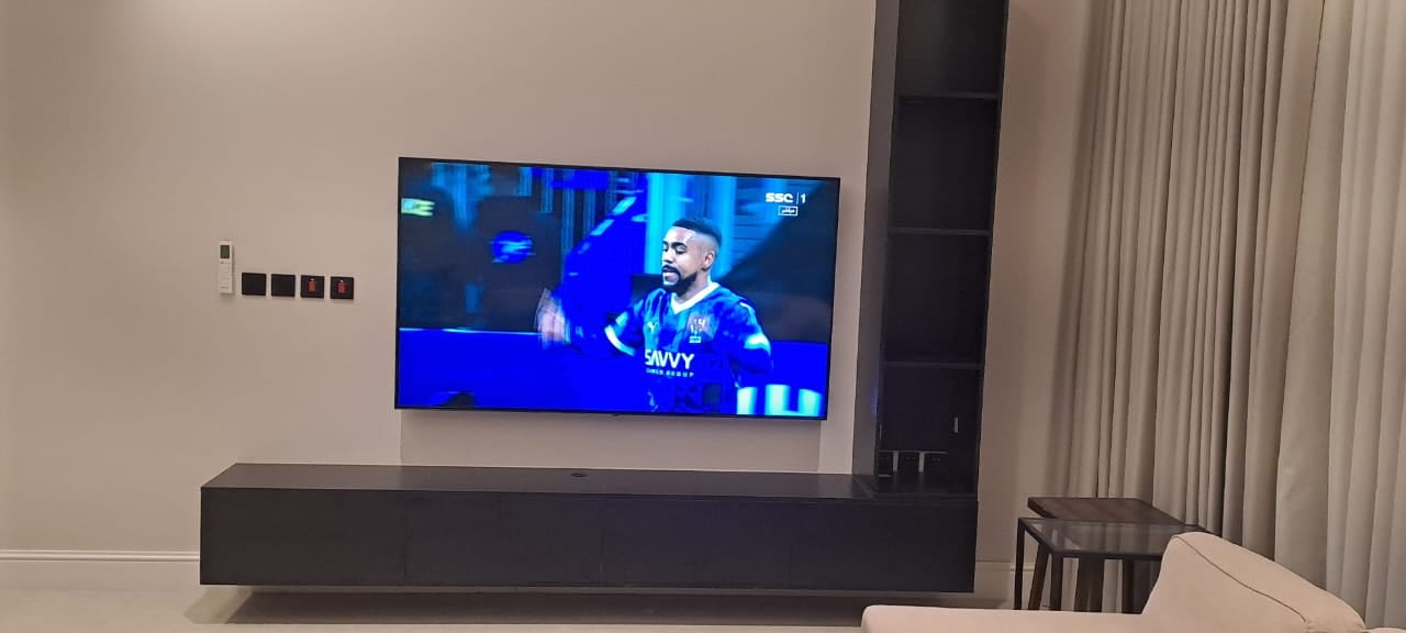 - ننصح بتعليق الشاشة وطاولة التلفاز حفاظا عليهما