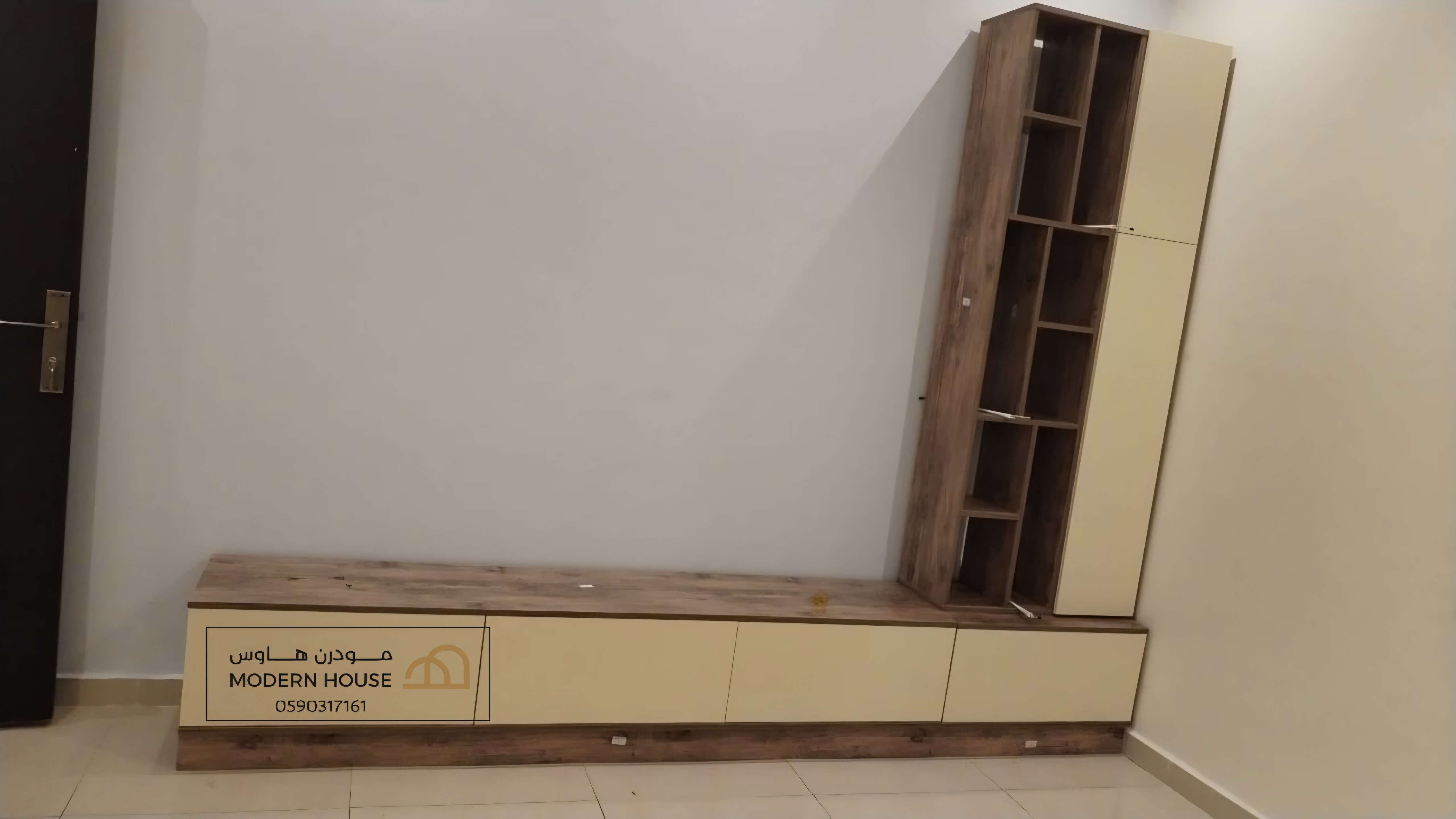 - عدد الابواب : 4 باب في طاولة التلفاز - 2 باب في الرفوف