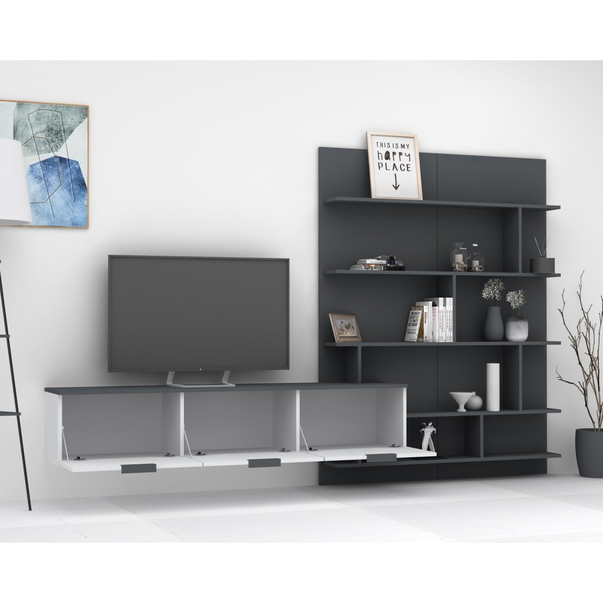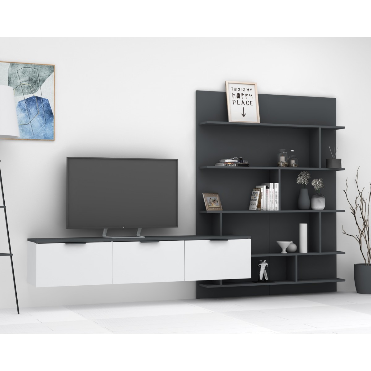 طاولة تلفزيون موديل Soft Line -رمادي غامق و ابيض