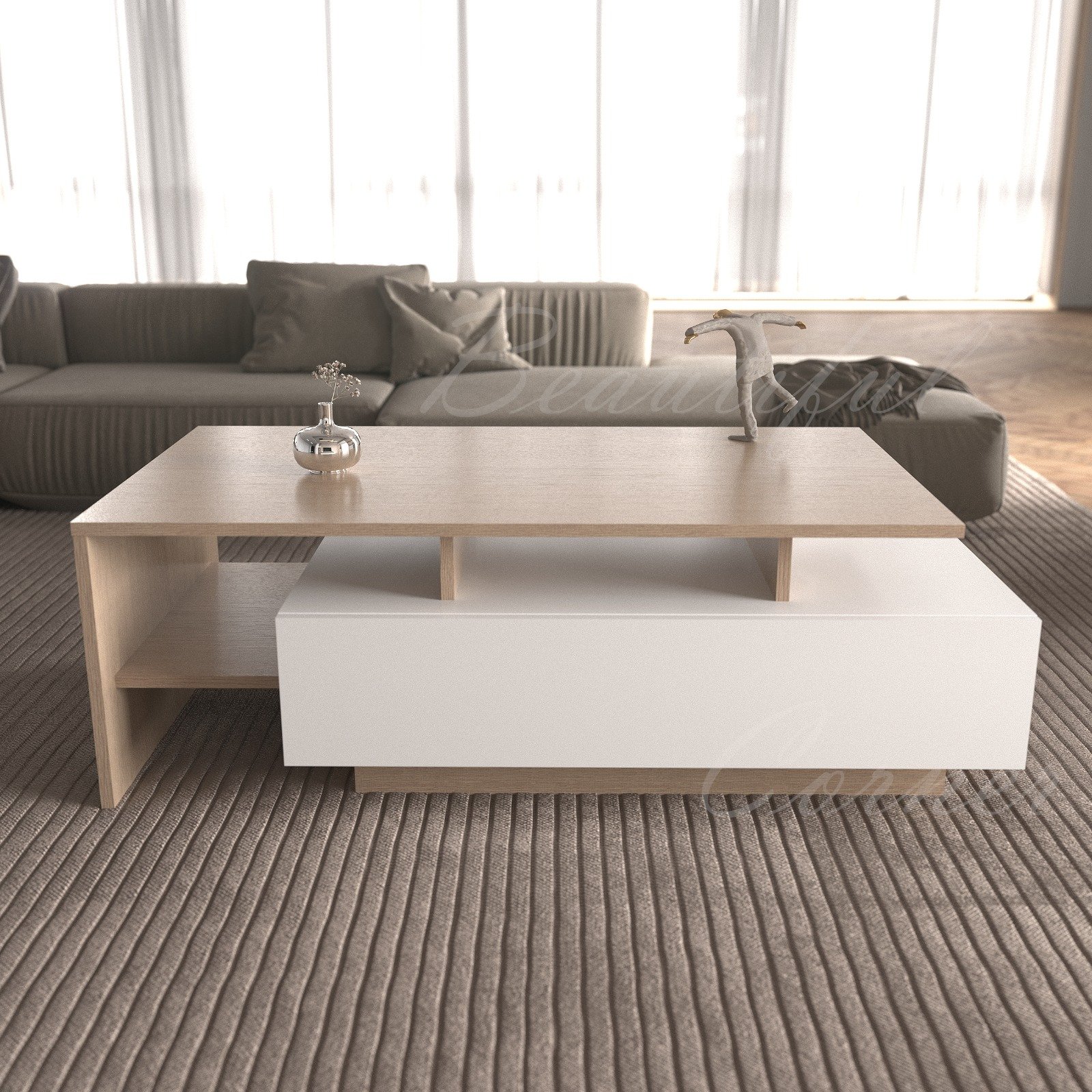 طاولة وسط ابيض مع بيج 125 - موديل Alfa
