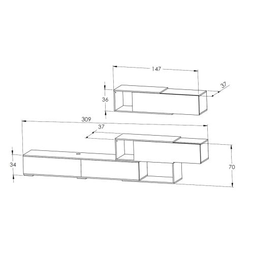 - عدد الابواب : 4 ابواب في طاولة التلفاز تفتح وتقفل بنظام الضغط