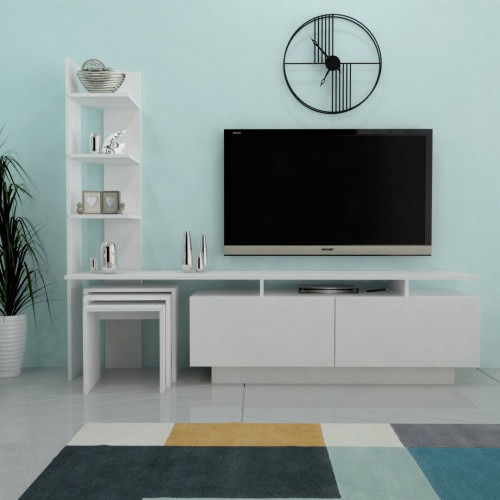 - طقم طاولات مع طاولة تلفزيون متعددة الاستخدام.