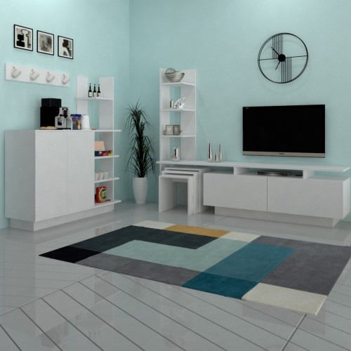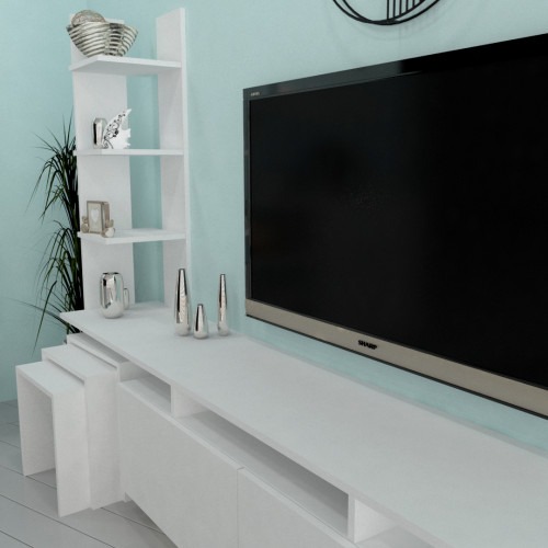 - احتواء المنتج على طاولات خدمة متداخلة مع تصميم طاولة التلفزيون.