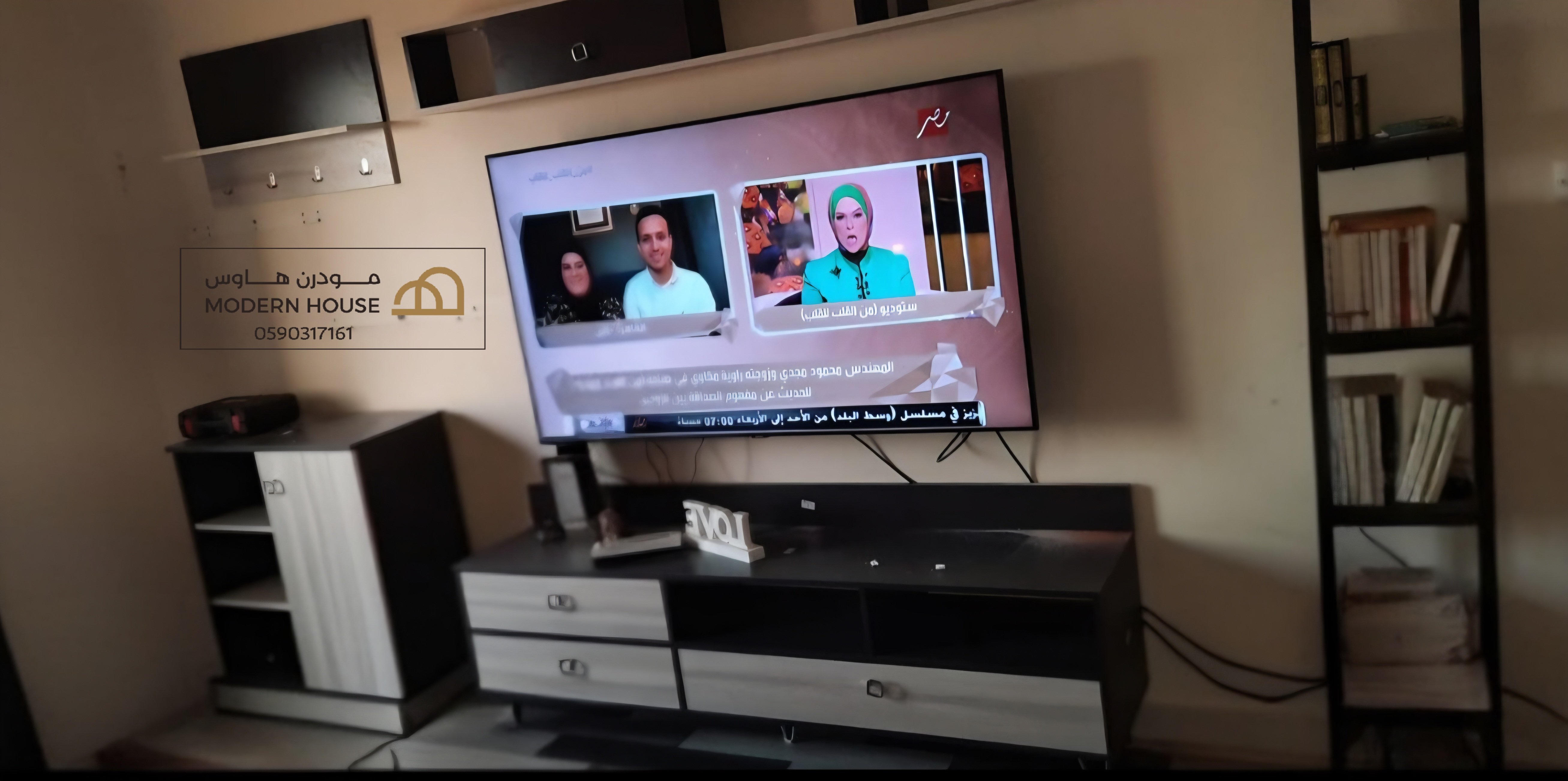 🚪 عدد الأبواب: 3 ابواب في طاولة التلفاز _ 1 باب في ركن القهوة