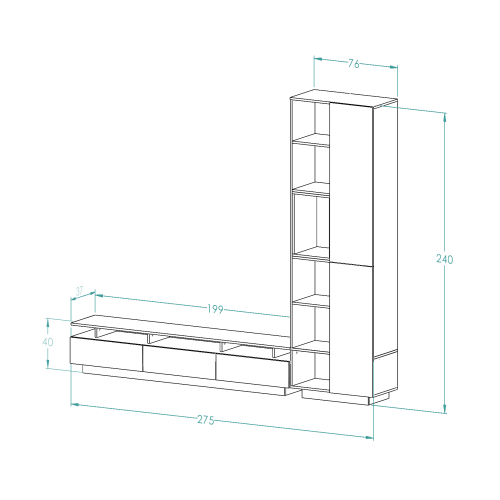 - ( 275 سم عبارة عن قطعتين كما هو موضح بالصور قطعة بعرض 199سم وقطعه بعرض 76سم )