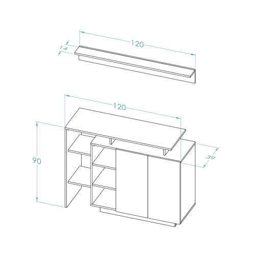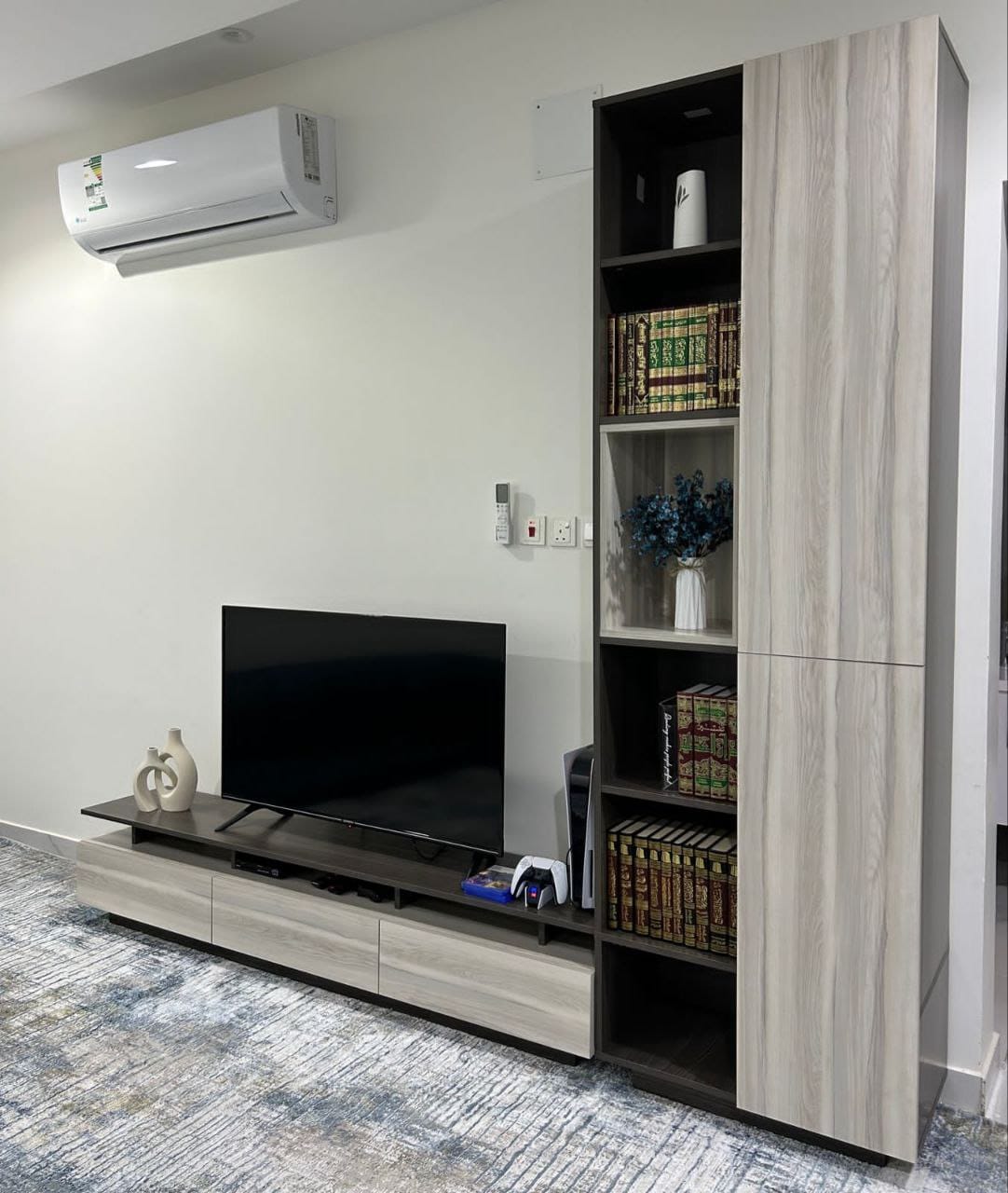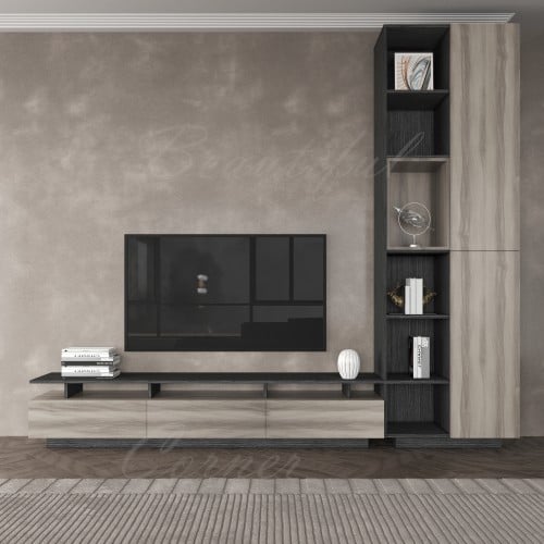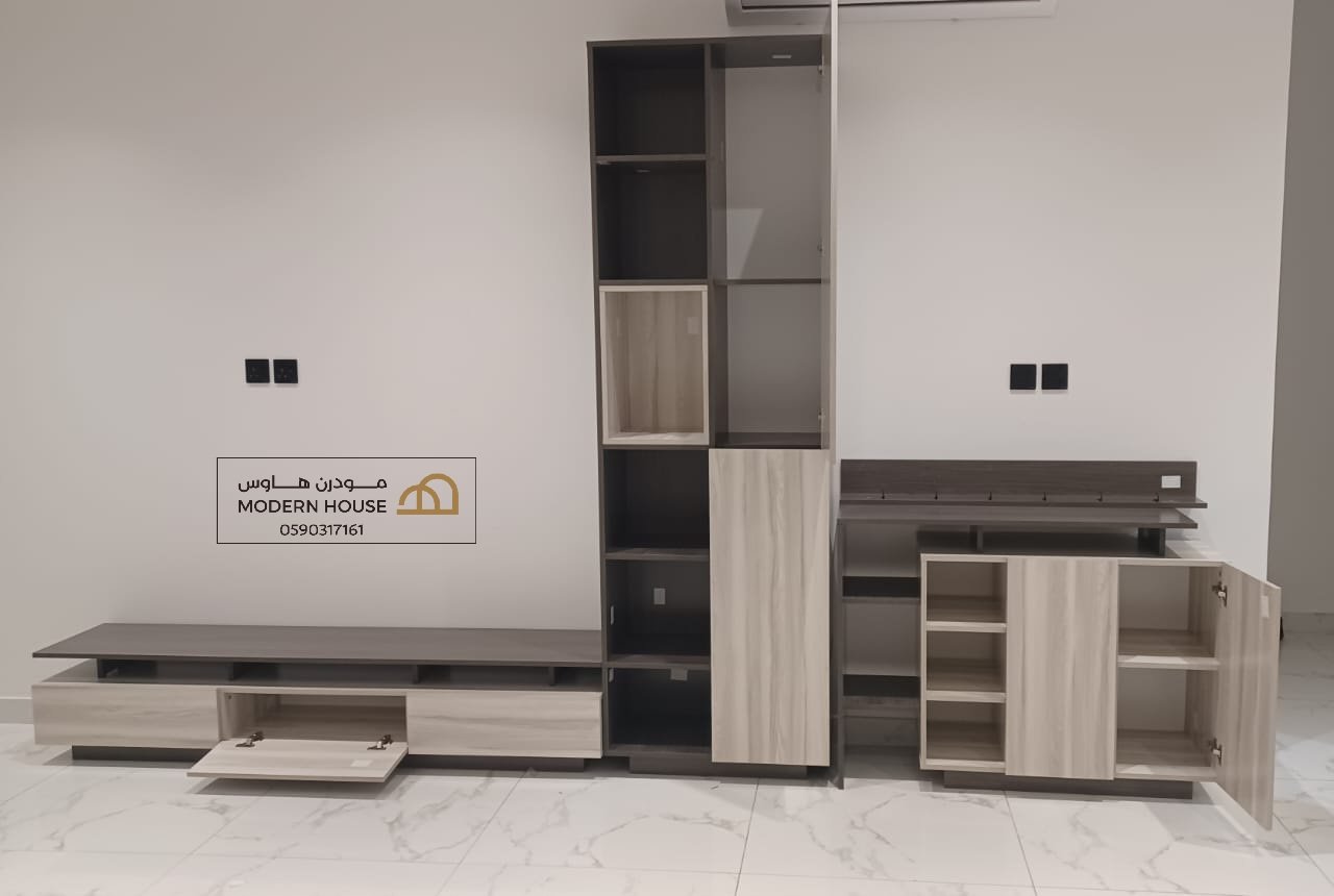 - عدد الابواب : 3 ابواب في طاولة التلفاز - 2 باب في الرفوف - 2 باب في ركن القهوة - 1باب في طاولة الوسط