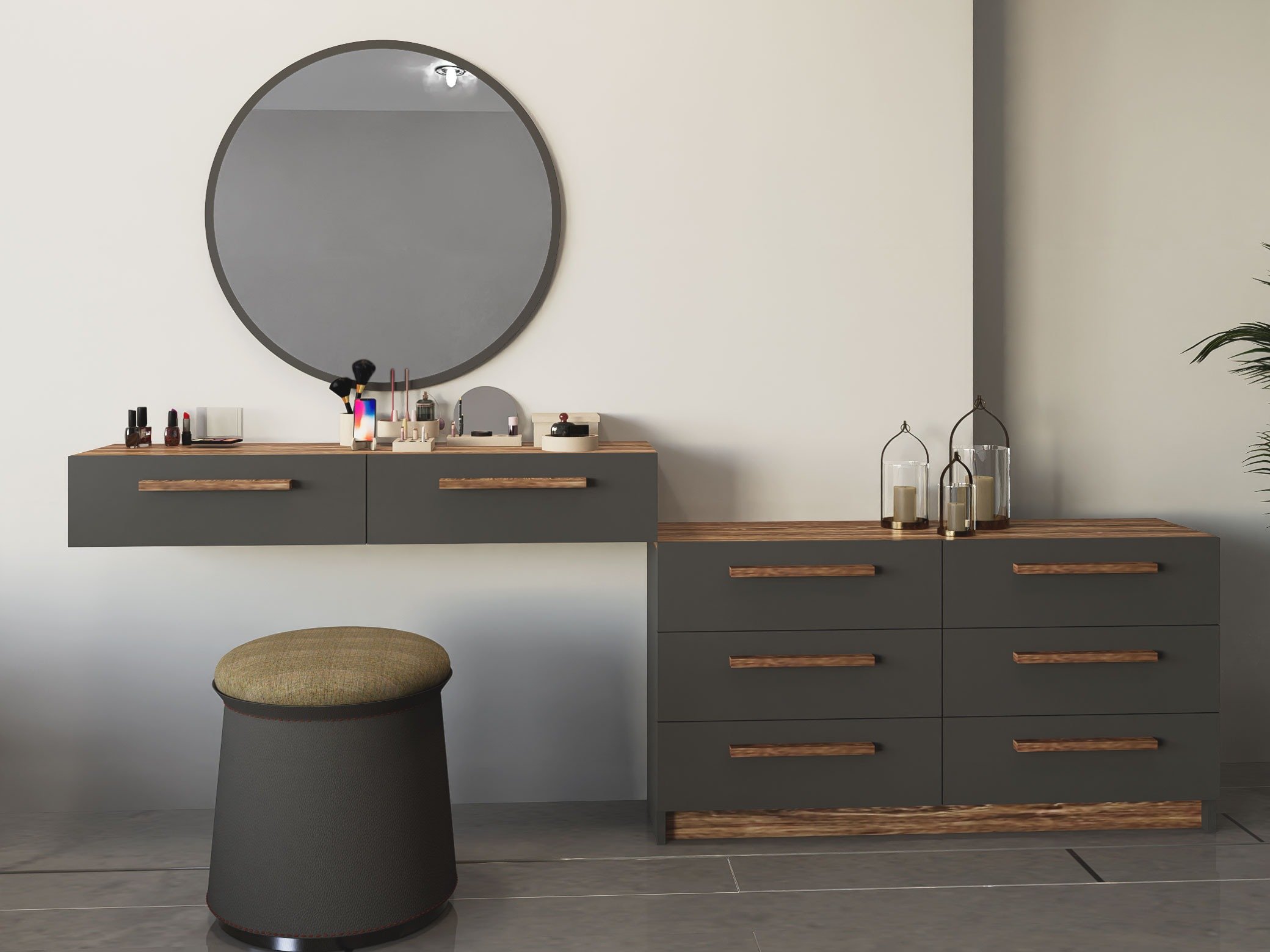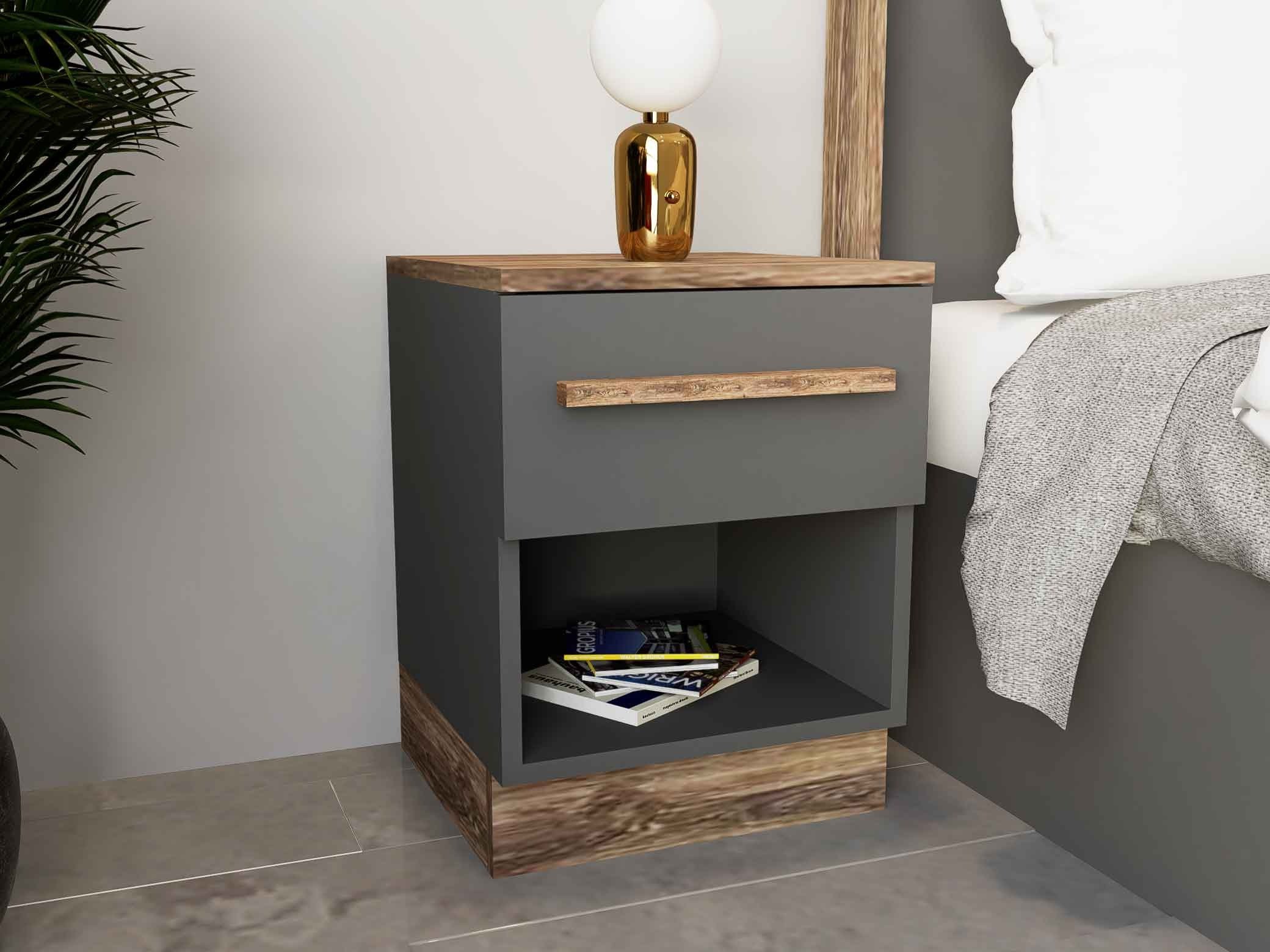اللون: رمادي غامق مع خشبي