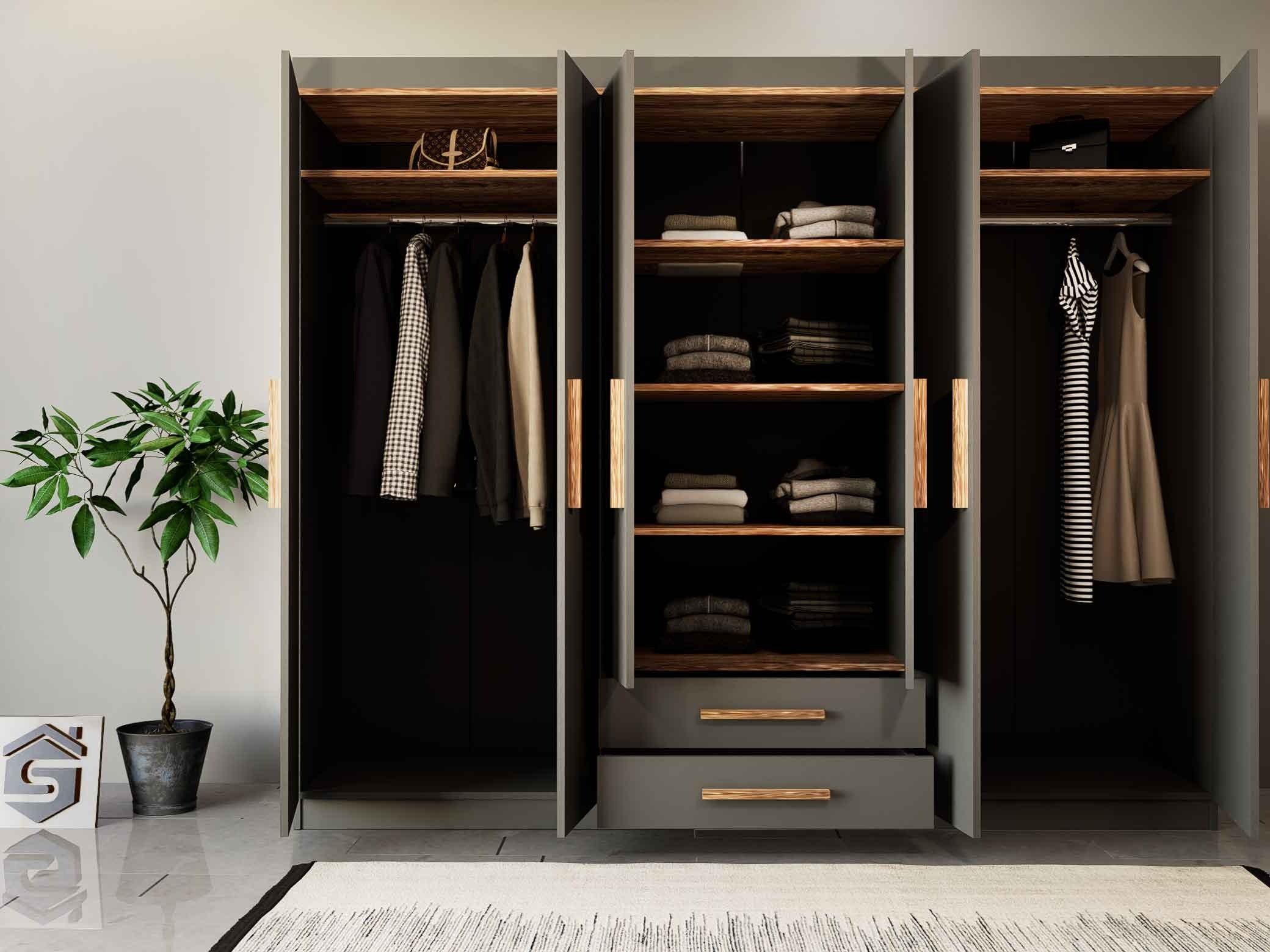 - يشمل خزانة ملابس 6 أبواب لتخزين الملابس بشكل منظم وسهل.