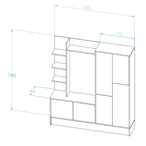 - عدد الابواب : 6 ابواب في طاولة المدخل تفتح وتقفل بنظام الضغط